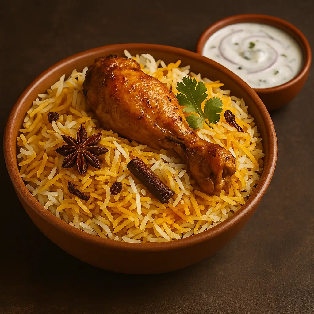 Biryani Juicy chicken slow-cooked in our signature secret masala, layered with perfectly steamed rice for that rich, bold flavor in every bite. A unique twist on a classic — made the Pommes Guys way. make me a perfect image for a shoo